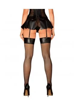 Bas Fetish Wetlook Noir Jarretière Dentelle