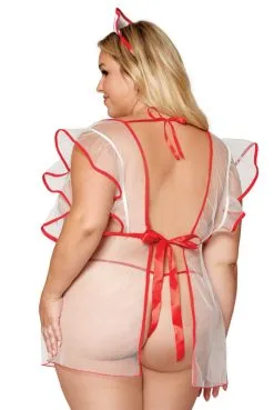 Costume Transparent Infirmière Sexy Grande Taille Nuisette Nipples Coiffe Et String