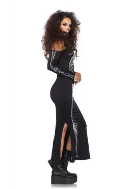 Magnifique Robe Spandex Avec Effet Squelette En Strass Pour Halloween
