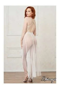 Body String Blanc Echancré Dentelle Et Sa Jupe Maille Transparente Amovible