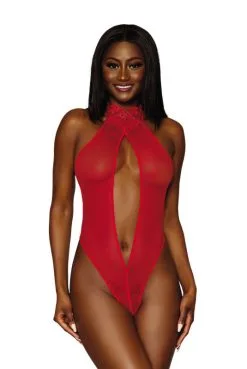 Ensemble Saint Valentin Body String Ouvert Menottes
