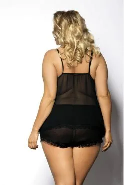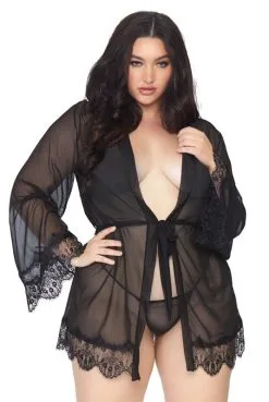 Déshabillé Peignoir Grande Taille Satin Noir Manche Dentelle