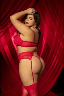 Ensemble Grande Taille Sexy Dentelle Brassière Résille Dentelle Jupe Longue Assortie