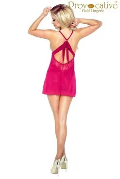 Nuisette Chic Satin Rouge Et Dentelle Noir