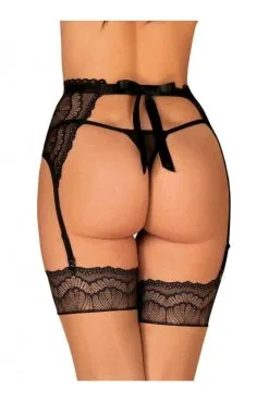 Porte Jarretelles Petits Noeuds Satin Et String Assorti