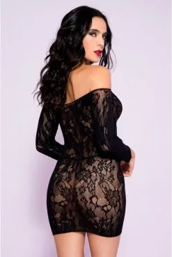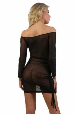 Robe Sexy Noire Dentelle Transparente Décolleté Laçage
