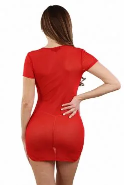 Robe Transparente Rouge Manches Courtes