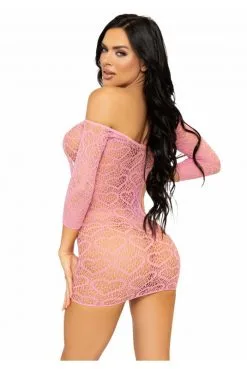 Mini Robe Sexy Résille Coeur Rose Manches Longues