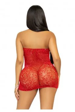 Mini Robe Sexy Rouge Dentelle Résille Et Strass