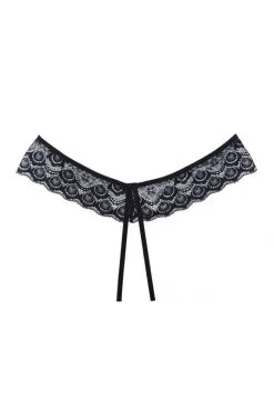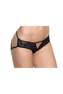 Culotte Ouverte Fine Résille Et Dentelle Noire