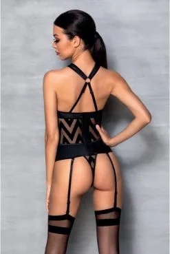 Guêpière Longue Résille Devant Laçage Corset Ajustable Et String