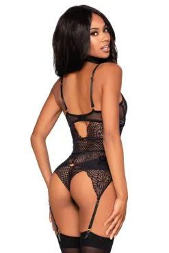 Guêpière Noire Grande Taille Dentelle Florale Décolleté Strappy