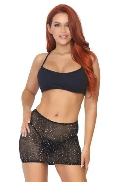 Robe Jupe Sexy 3 En 1 Résille Stass Cristal Noir