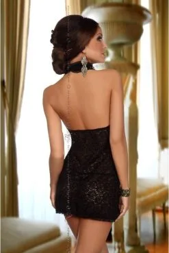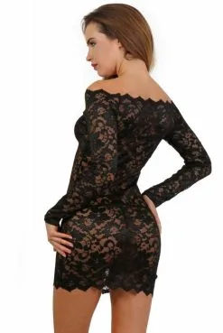 Robe Lingerie Dentelle Noire Manches Longues Spazm