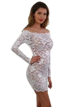Robe Lingerie Dentelle Blanche Manches Longues Spazm