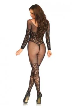 Combinaison BodyStocking Effet Guêpière Et Bas Grande Résille