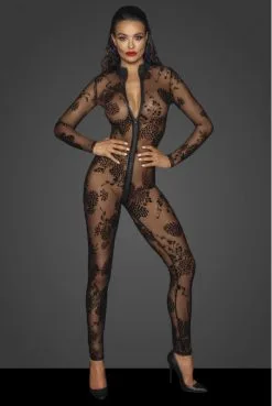Combinaison Intégrale Transparente Triple ZiP Tulle Floqué