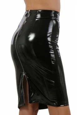 Jupe Longue Sexy Fendue Crayon Noir Vinyle Zip Dos