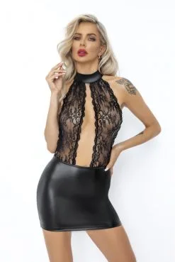 Robe Fetish ClubWear Libertin WetLook Noir Cotés Filet Résille