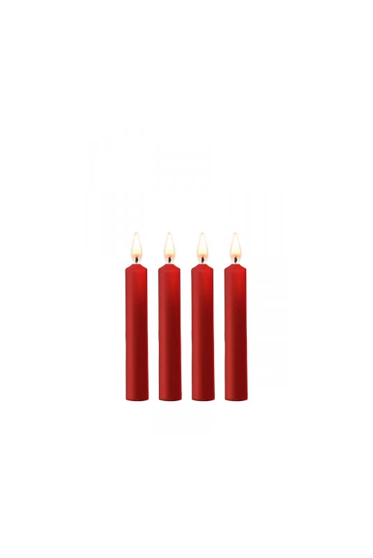 Kit de 4 Bougies Basse Température rouges Teasing Wax Candles Large (12 x 1,7 cm), par le spécialiste du BDSM Ouch!