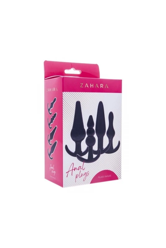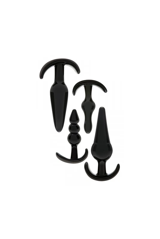 Un kit de 4 petits plugs de formes variées, en PVC, idéal pour découvrir le plaisir anal en douceur.