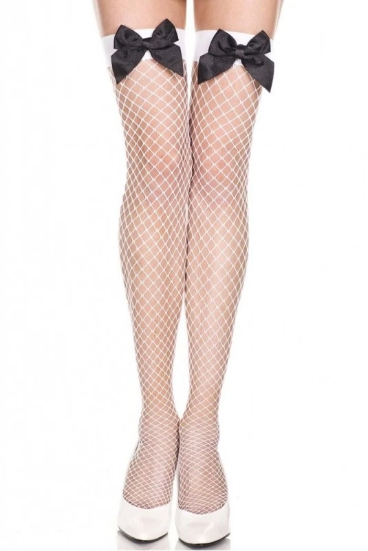 Bas Blancs Résille Filet Noeuds Satinés Noirs Autofixants