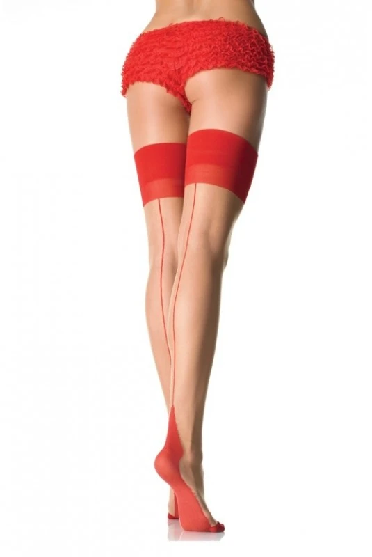 Une paire de bas divine pour un jeu de jambes sexy ! Couleur rouge amour terriblement craquant. Bas cubains (talon rĂ©haussĂ© de couleur soutenue) avec coutures sexy Ă l’arrière. Jarretières larges. Maintien sur la jambe par Ă©lastiques. Contraste rouge sur chair.