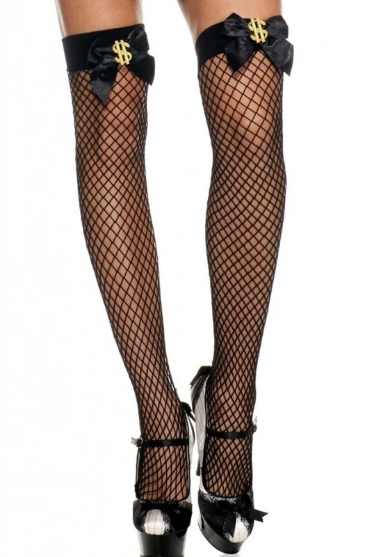 Bas Filet Noir Noeud et Dollars Autofixants