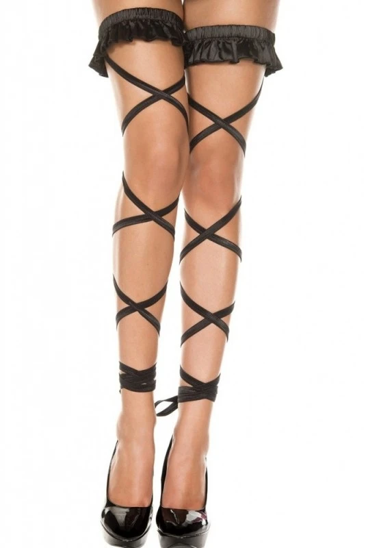 Bas Jambières Noir Lanières Jarretières à Volant