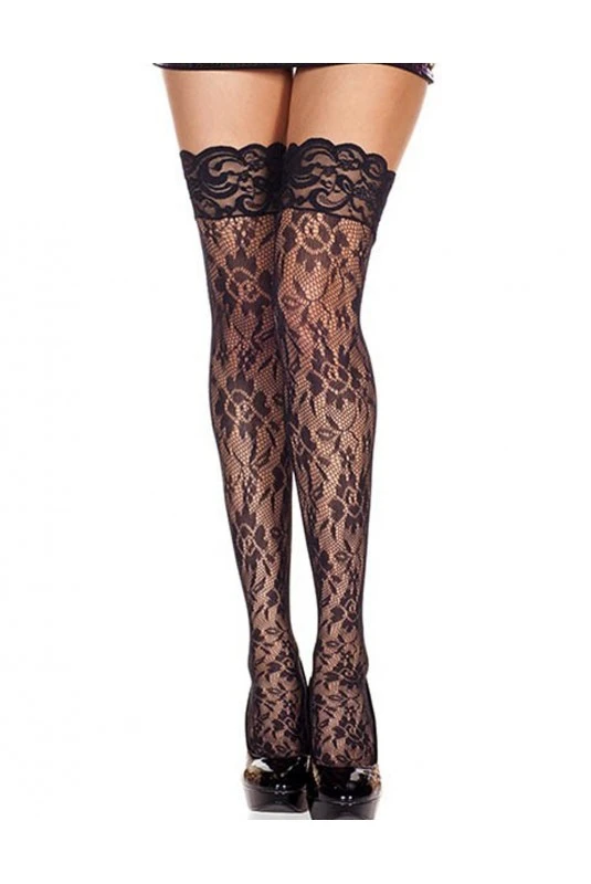 Bas Noirs Autofixants Résille Florale Jarretières Dentelle