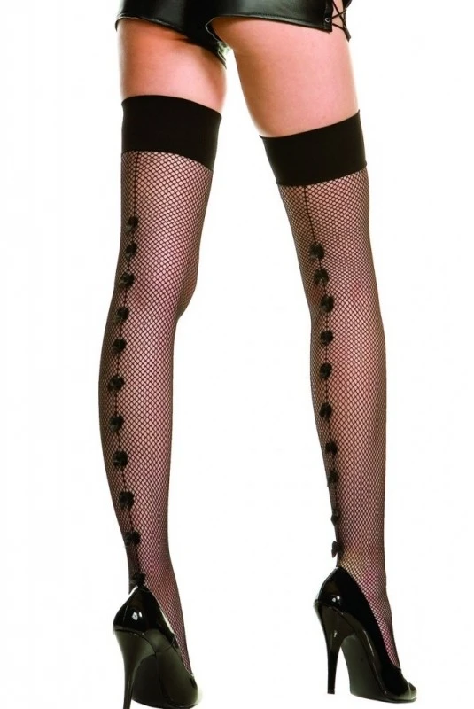 Bas Noirs Fine Résille Noeuds Satin