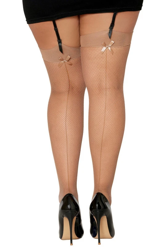 Bas Résille Couture Liseret Nœud Chair Grande Taille