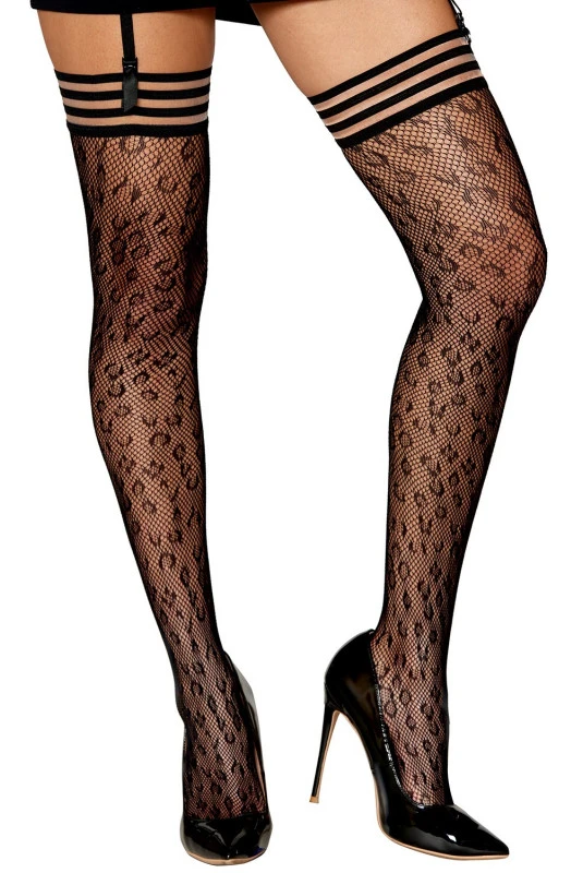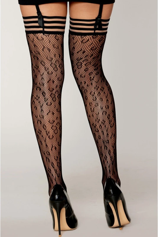 Bas Résille Motif Léopard Jarretières Noires et Transparentes