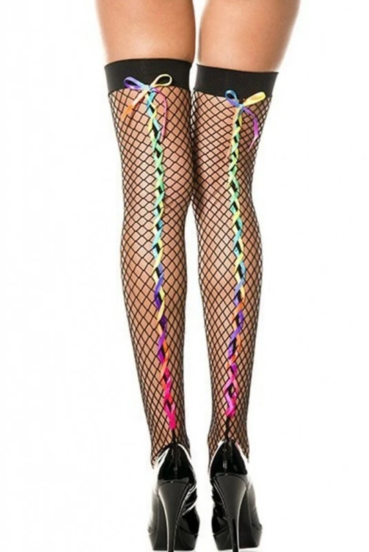 Bas Rubans Colorés Arc en Ciel Noirs Résille Filet Autofixants