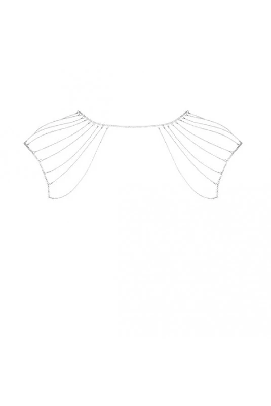 Bijou d’épaules et de dos ajustable, en chainettes métalliques argentées, pour sublimer vos courbes et éveiller les fantasmes.