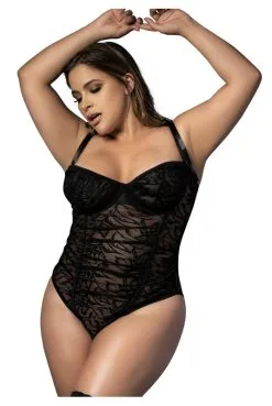Body String Rouge Echancré Dentelle Et Sa Jupe Maille Transparente Amovible Grande Taille