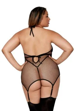 Body Guépière Simili Cuir Grande Taille et Résille à Porte Jarretelles