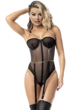Body Résille Noire Transparente à Jarretelles Chainettes Dorées