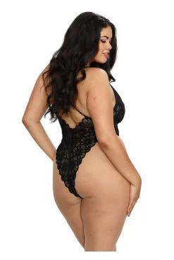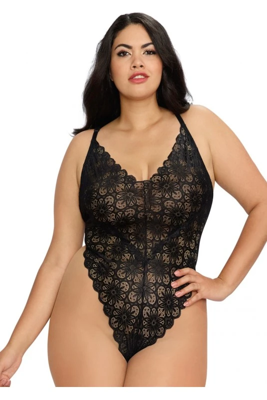 Body String Grande Taille Echancré Dentelle et sa Jupe Maille Transparente Amovible