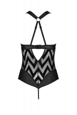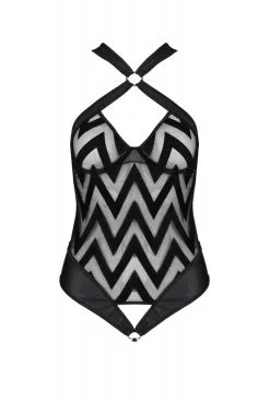 Body string noir en tulle et faux cuir, par Passion Lingerie.