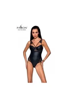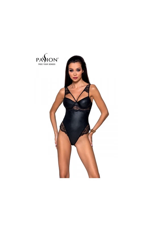 Body sexy noir en faux cuir et dentelle, par Passion Lingerie.