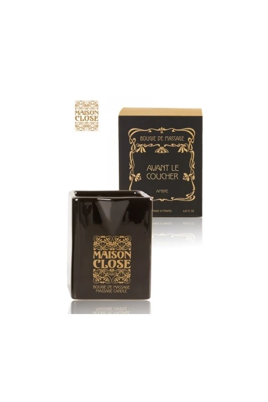 Bougie de massage parfumée Maison Close avec pot en céramique et bec verseur.