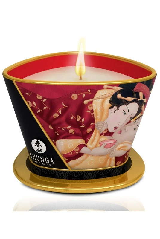 Éteignez la flamme avant de verser l’huile dans la paume de la main. Appliquez sur tout le corps pour un massage sensuel.