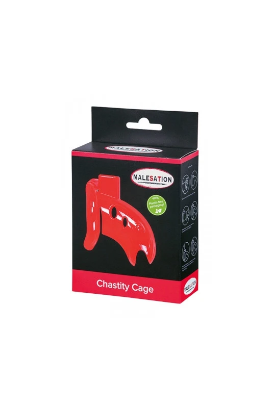 Cage de chasteté rouge de haute qualité en ABS, à la fois rigide et légère, longueur totale 7,5 cm.