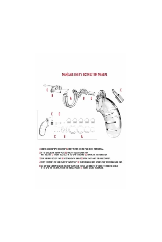 Cage de chastetĂ© pour homme ajustable et transparente, longueur 9 cm, d’un design lĂ©gèrement plus ouvert que le Modèle 1 de la marque.