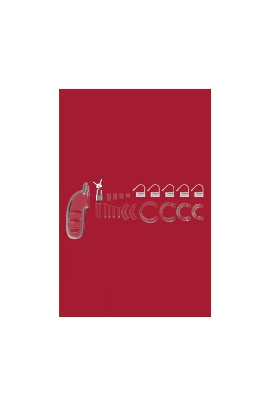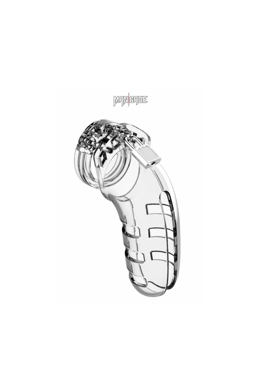 Cage de chasteté masculine ajustable et transparente, longueur 14 cm, adaptée aux verges de grande taille, par ManCage.