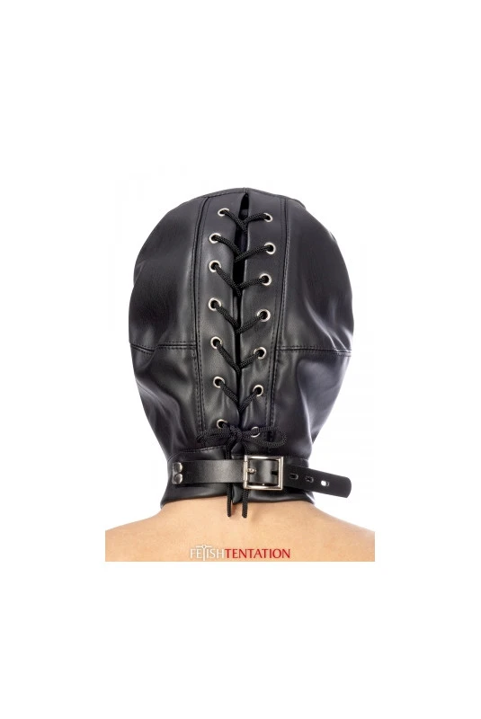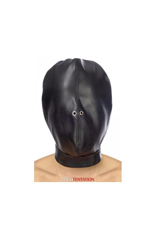 Cagoule BDSM de haute qualité en simili cuir, pour une soumission totale de votre partenaire.