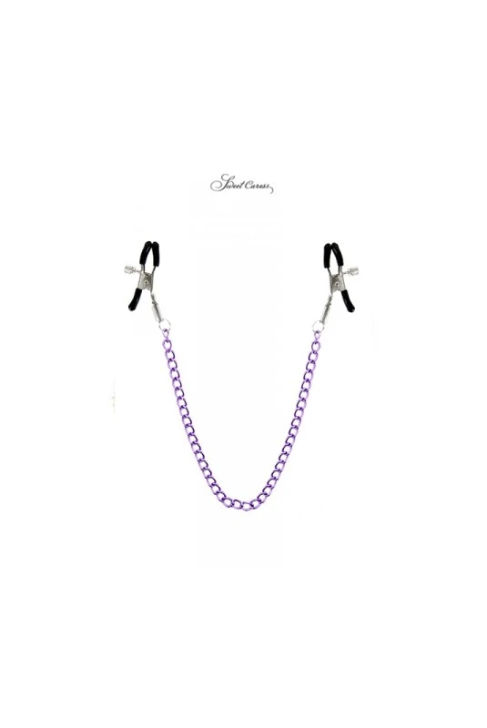 2 pinces à seins reliées entre elles par une chainette en acier, pour lui procurer de délicieuses sensations.