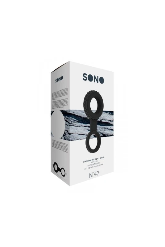 Cockring super extensible en soft TPE, avec séparateur de bourses, pour serrer la verge et les testicules, par SONO.