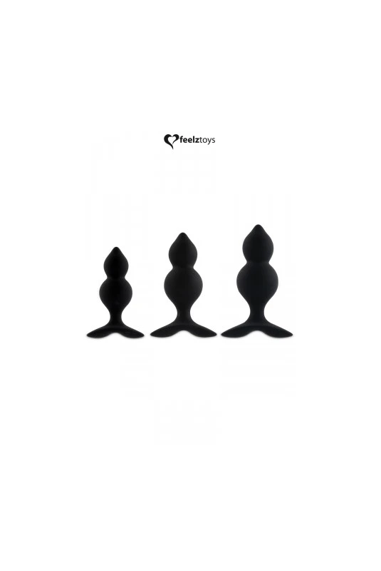 Kit de 3 Plugs Anal en silicone, tailles différentes et formes spécifiques pour décupler le plaisir, par FeelzToys.